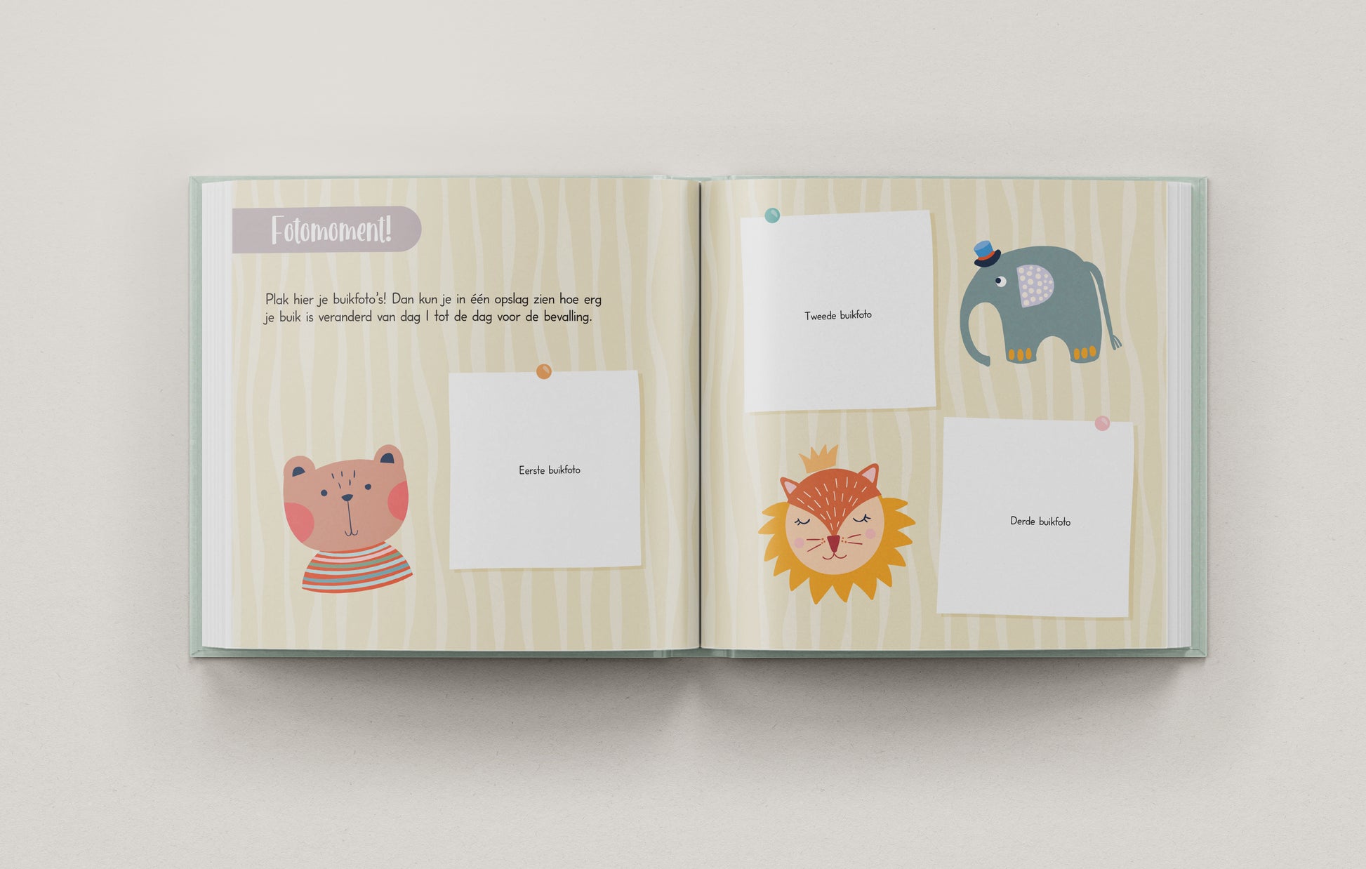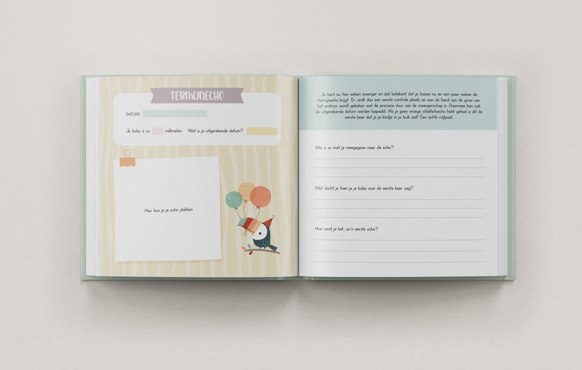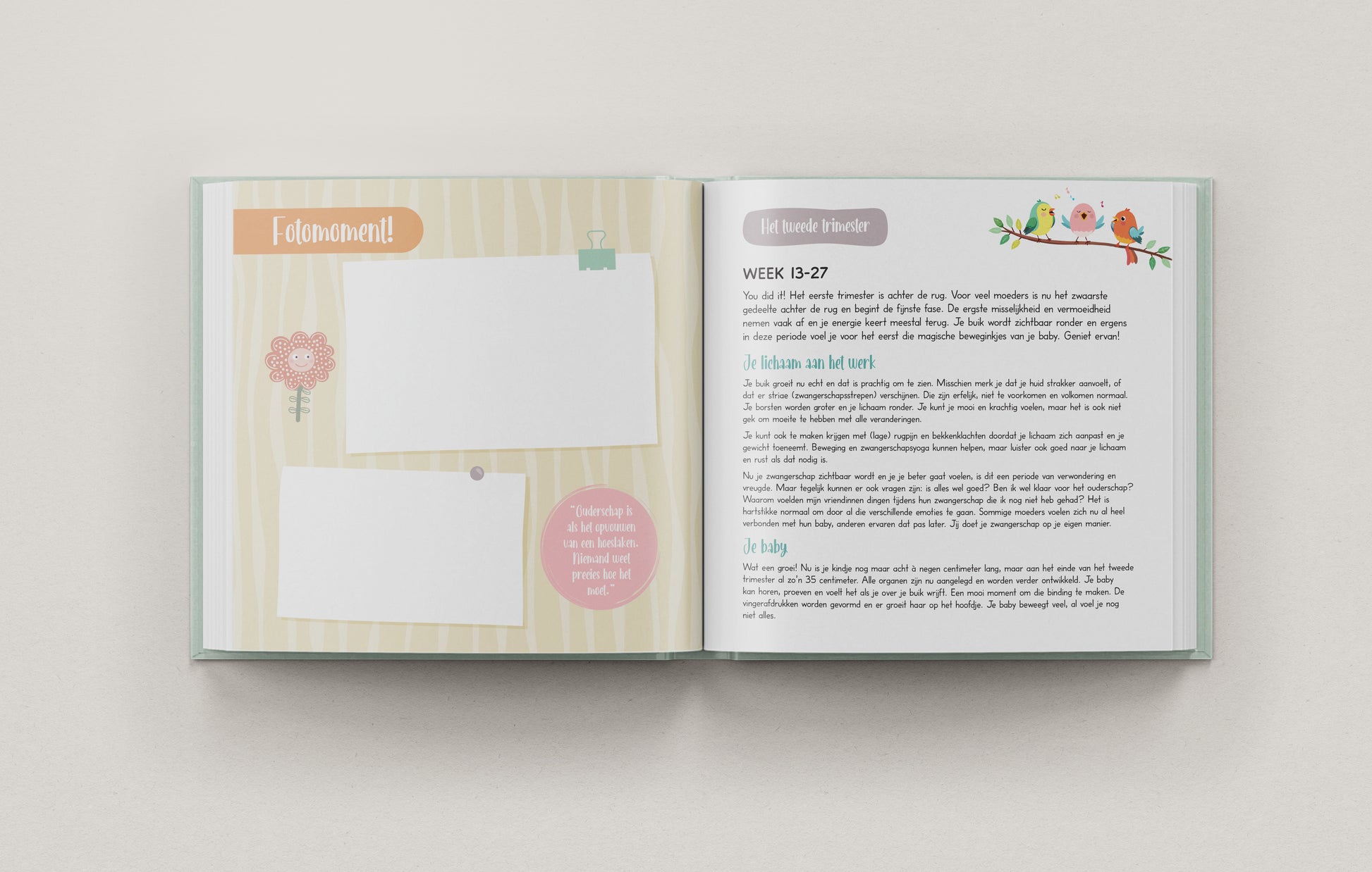 Het boek sluit af met een bijzonder laatste invulmoment, inclusief ruimte voor een foto samen met je kind en partner, een waardevolle herinnering aan het begin van jullie verhaal.