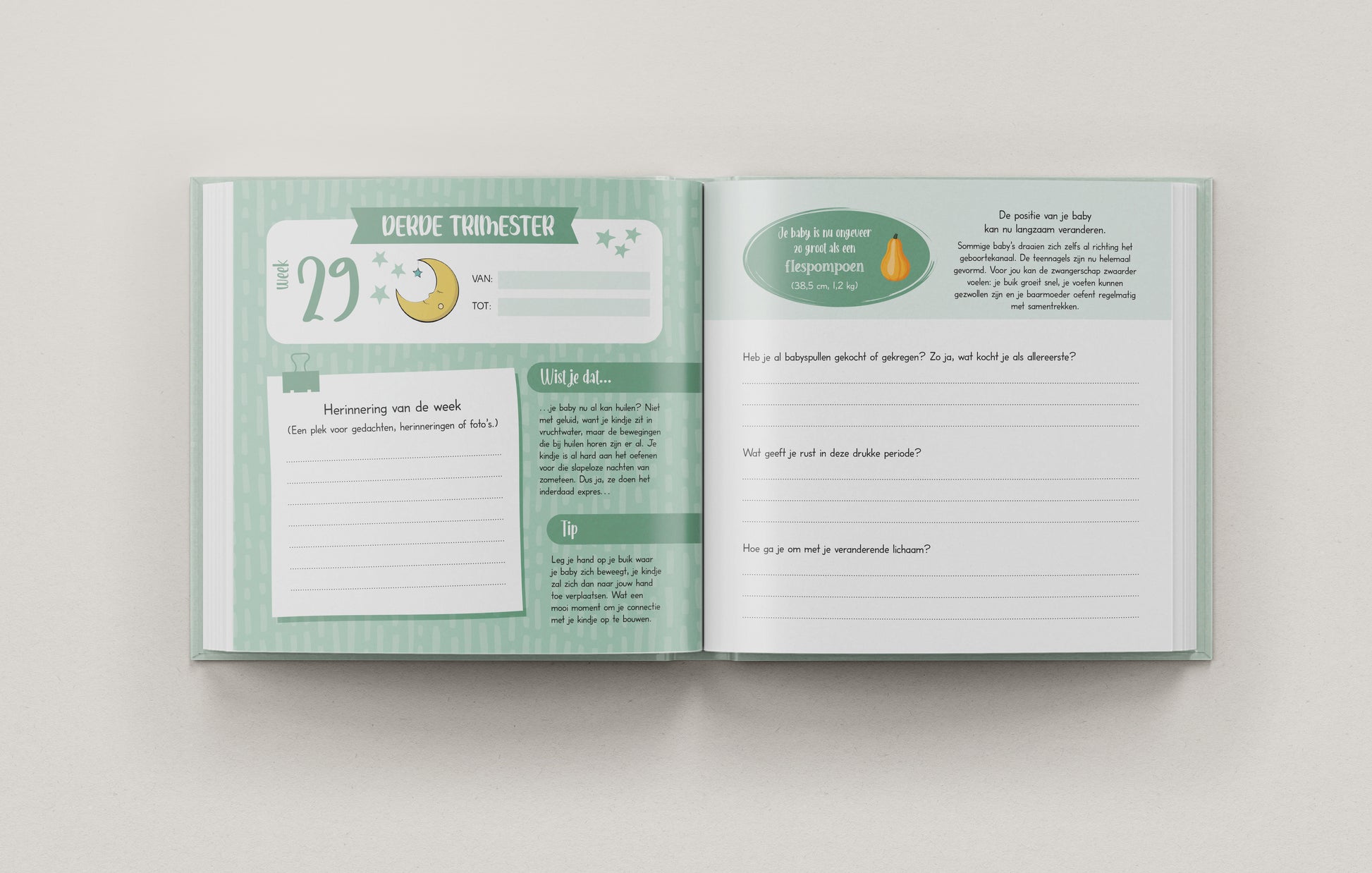 Dit zwangerschapsdagboek biedt ook ruimte om:
