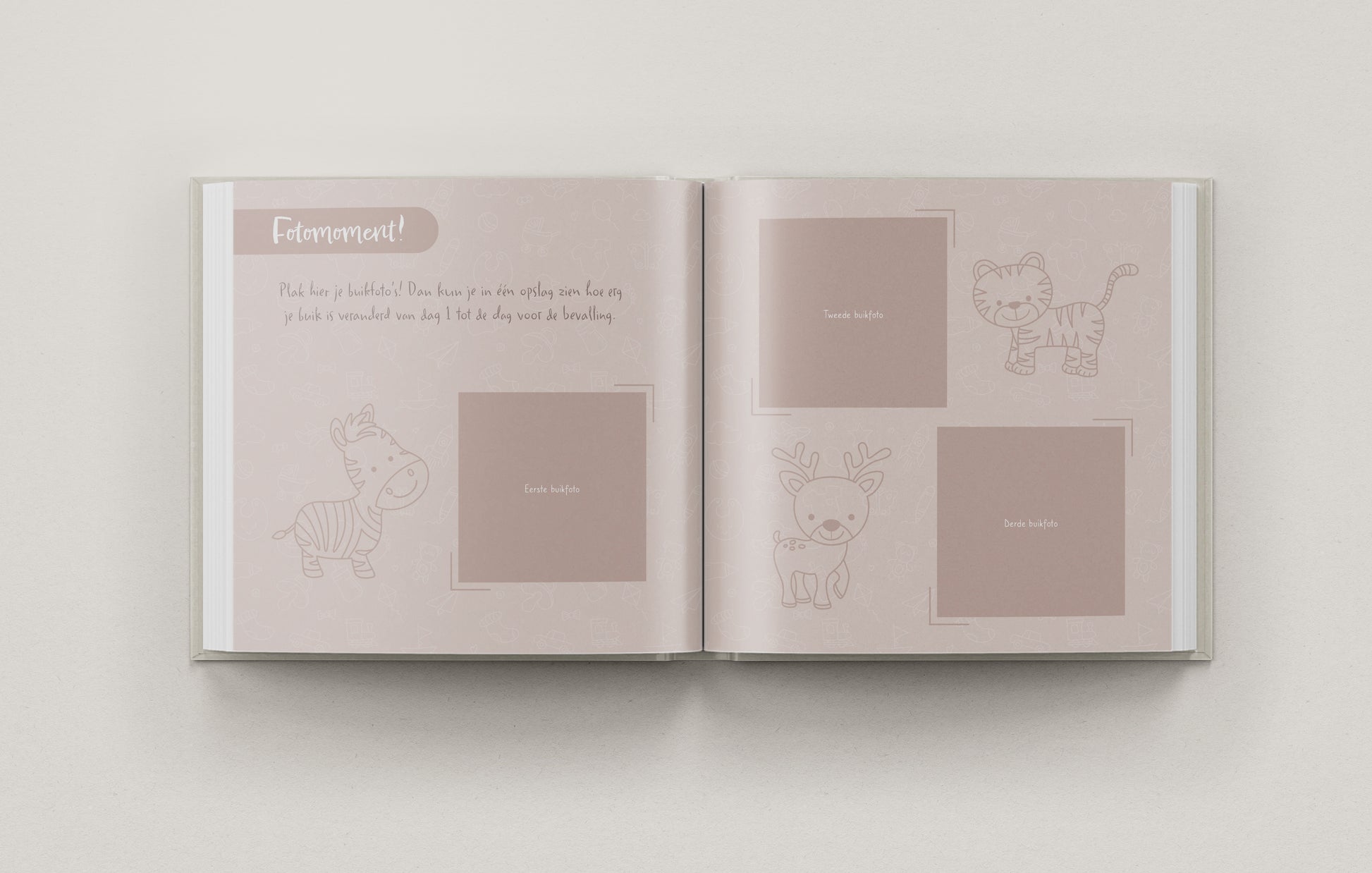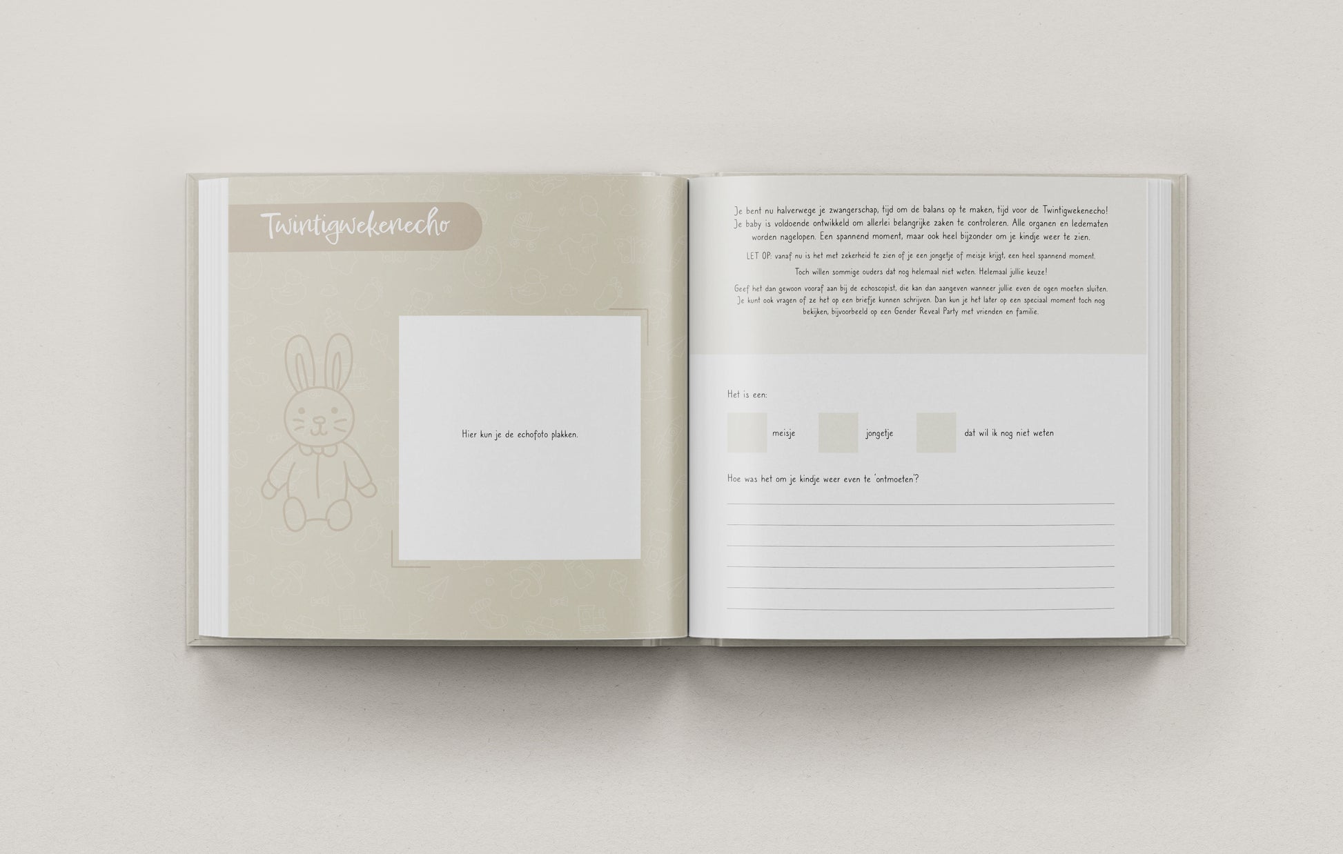Het boek sluit af met een bijzonder laatste invulmoment, inclusief ruimte voor een foto samen met je kind en partner, een waardevolle herinnering aan het begin van jullie verhaal.
