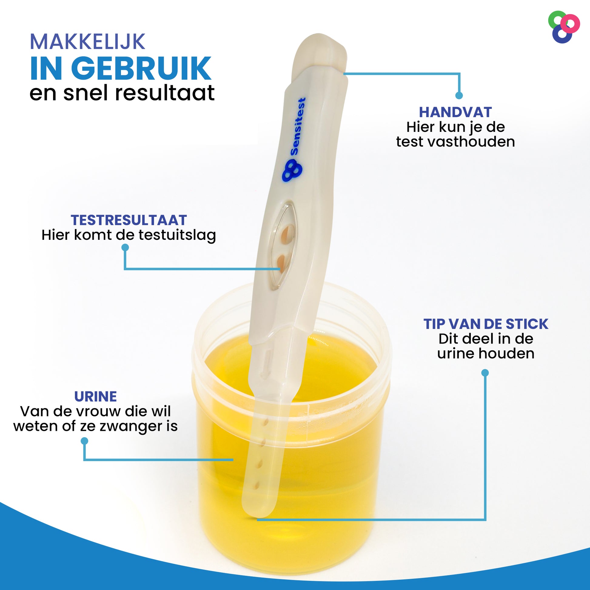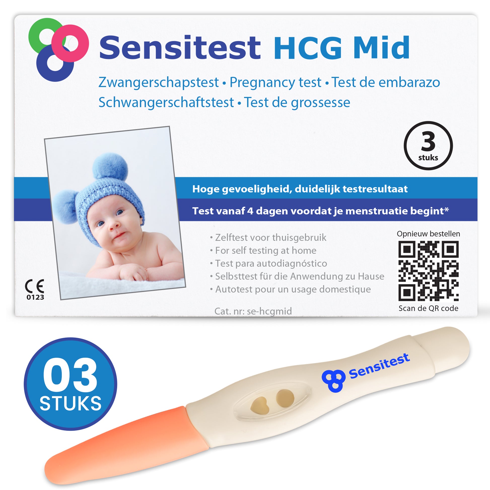 Vanaf de dag dat je overtijd bent, heeft de Sensitest zwangerschapstest midstream een betrouwbaarheid van 99,9%. Dit komt door de gevoeligheid van 25 mIU/ml waardoor de test een hogere betrouwbaarheid heeft dan een test van 10 mIU/ml. Deze zwangerschapstest kan op elk moment van de dag worden uitgevoerd, ook met ochtendurine. Dit product wordt geleverd met een duidelijke Nederlandse gebruiksaanwijzing en wordt verzonden in een blanco verpakking zonder reclame of merknaam. Lees voor gebruik van de zwangerschapstest de hele bijsluiter.